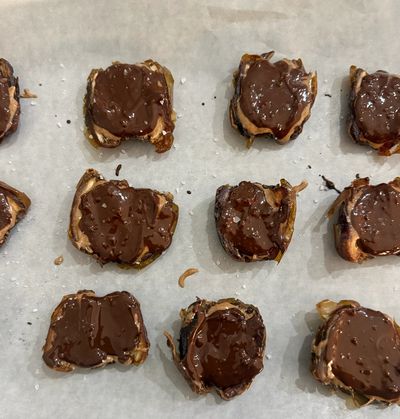 4. Add chocolate on top of almond butter.