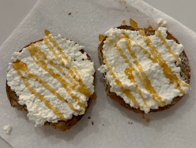 1. Toast bagel. I love Royo because it is high in protein and fiber.